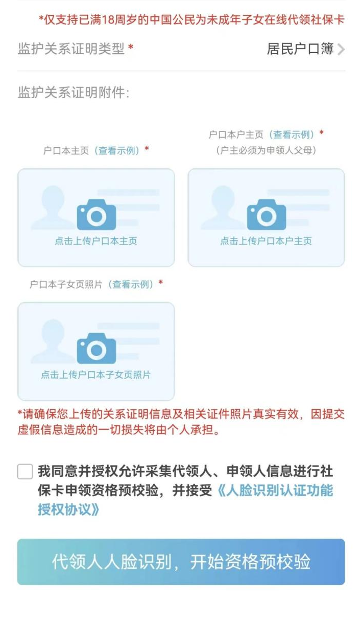 三、代未成年子女申领社会保障卡
