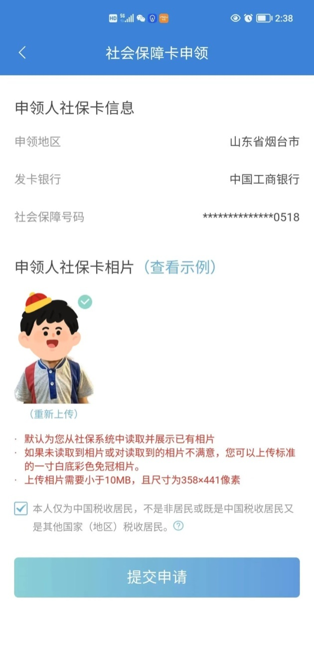 5、首次办理社保卡人员需要上传电子版照片,补换卡不需要提供照片(7周岁以上儿童需提供电子版照片,已超过7周岁原社保卡照片为人社默认logo,补换卡需提供照片)。