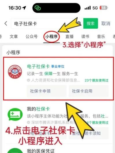 4、进入【电子社保卡小程序】