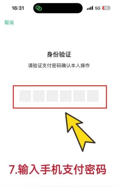 7、输入手机支付密码进行身份验证