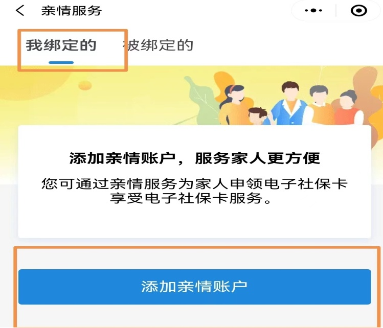 (二)选择“我绑定的”,点击“添加亲情账户”。