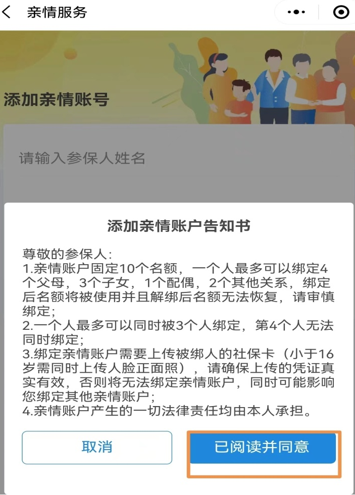 (四)在添加亲情账户告知书界面点击“已阅读同意”。