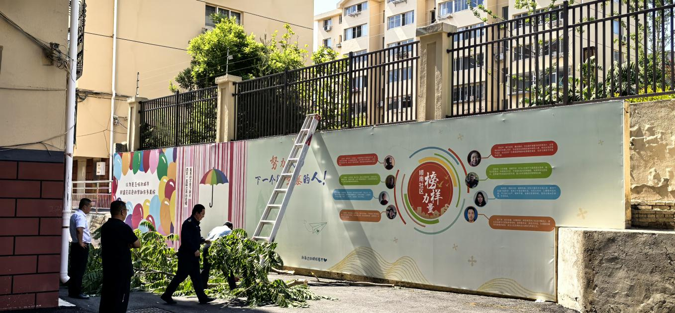 6月12日,顺南社区联合碧桂园物业方,组建专项工作小组,对该处安全隐患进行集中处理。工作人员提前在周边疏散围观群众,保障作业现场安全。随后,专业砍伐人员借助专业工具,小心翼翼地对影响广告牌安全的树木进行砍伐。整个作业过程严格按照安全规范执行,经过数小时的紧张工作,成功将隐患树木全部清理完毕。