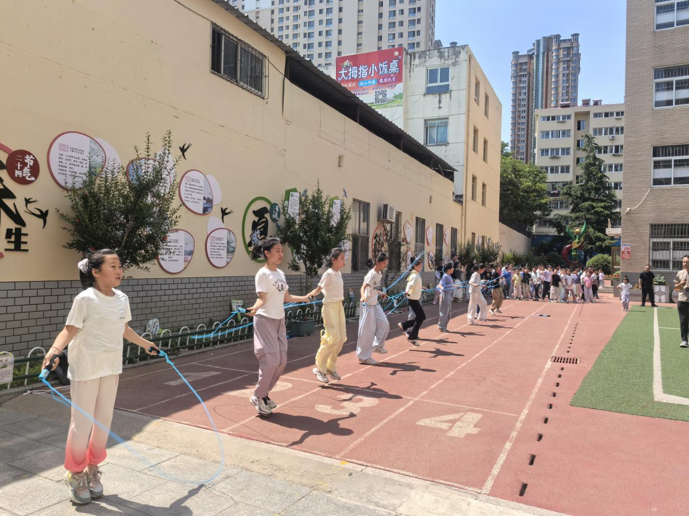为丰富青少年课余生活,提升身体素质,6月17日,由芝罘区教体局指导、顺南社区志愿服务队联合通伸小学承办的第三届芝罘区青少年跳绳大赛在通伸小学操场激烈开赛。来自全区12个街道的150余名青少年选手齐聚一堂,展开速度与默契的精彩比拼。