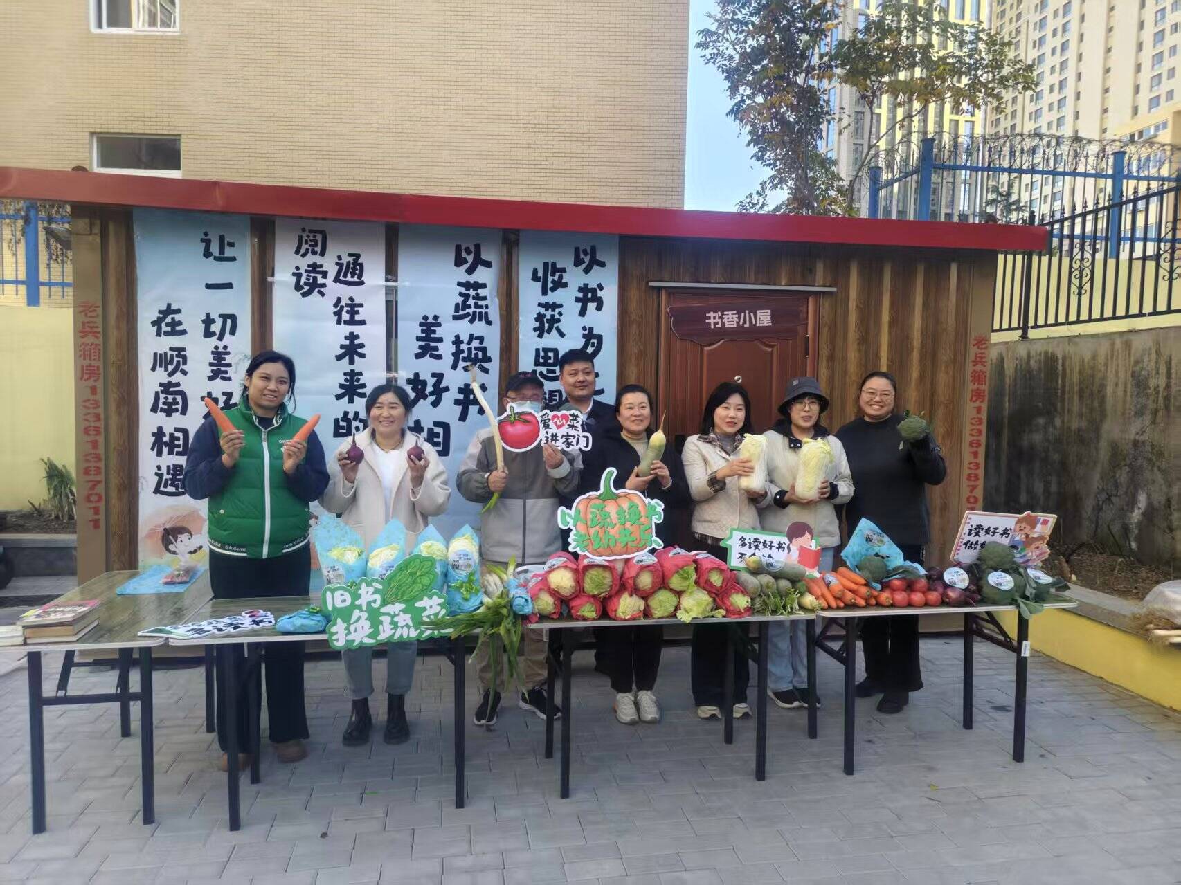 童趣市场成为孩子们的欢乐天地。这里摆放着各种孩子们喜爱的玩具、文具和手工艺品,都是社区的小朋友们自己带来的闲置物品进行售卖或交换。与此同时,“以书换蔬”活动也在热闹开展,孩子们纷纷拿出自己闲置的书籍,换取新鲜的蔬菜。孩子们在摊位前忙碌地招呼着顾客,讨价还价,体验着当“小老板”的乐趣。通过这种方式,不仅培养了孩子们的社交能力和理财意识,还让他们学会了分享和珍惜。