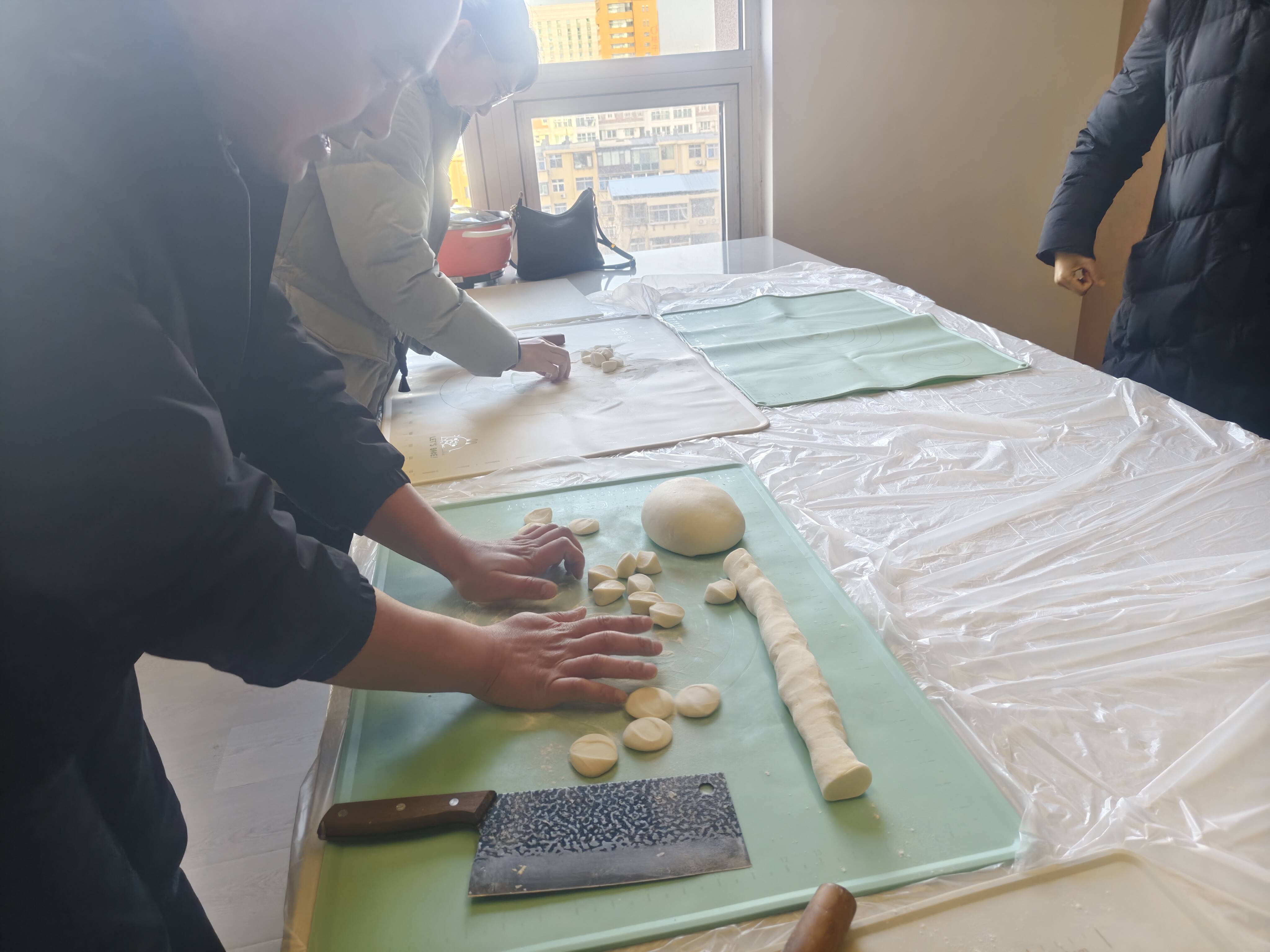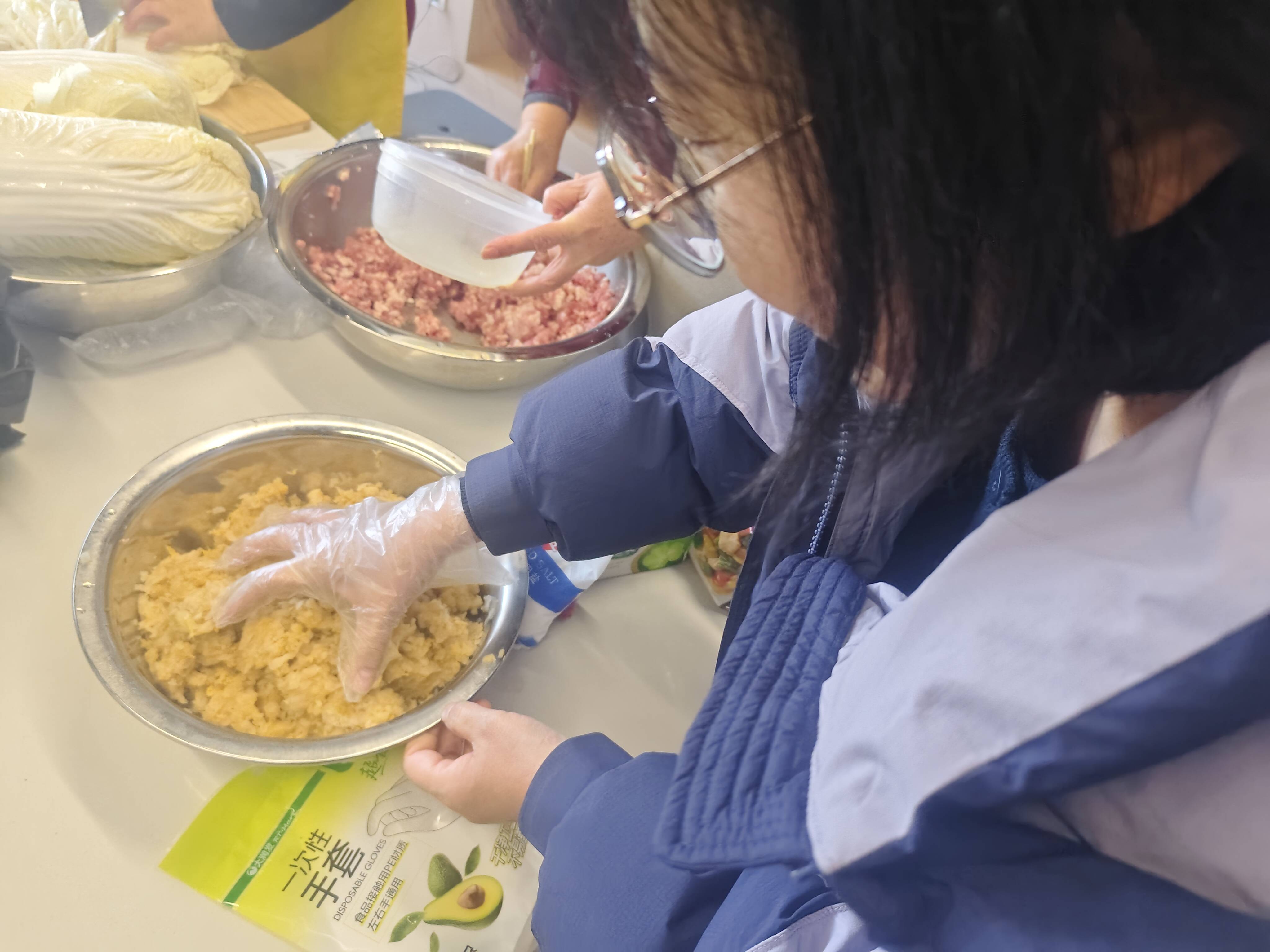 活动前期,扬帆公益发展中心工作人员提前采购新鲜面粉、白菜、猪肉等食材,备齐擀面杖、案板、餐盒等全套工具,确保活动顺利开展。活动现场,社区志愿者与主城控股工作人员分工明确、默契协作:揉面组力道均匀,擀皮组手法娴熟,包馅组创意十足,元宝饺、月牙饺等形态各异的饺子在大家手中快速成型。过程中,老人们与年轻志愿者分享包饺子技巧,邻里情谊在指尖流转,现场氛围温馨热烈。