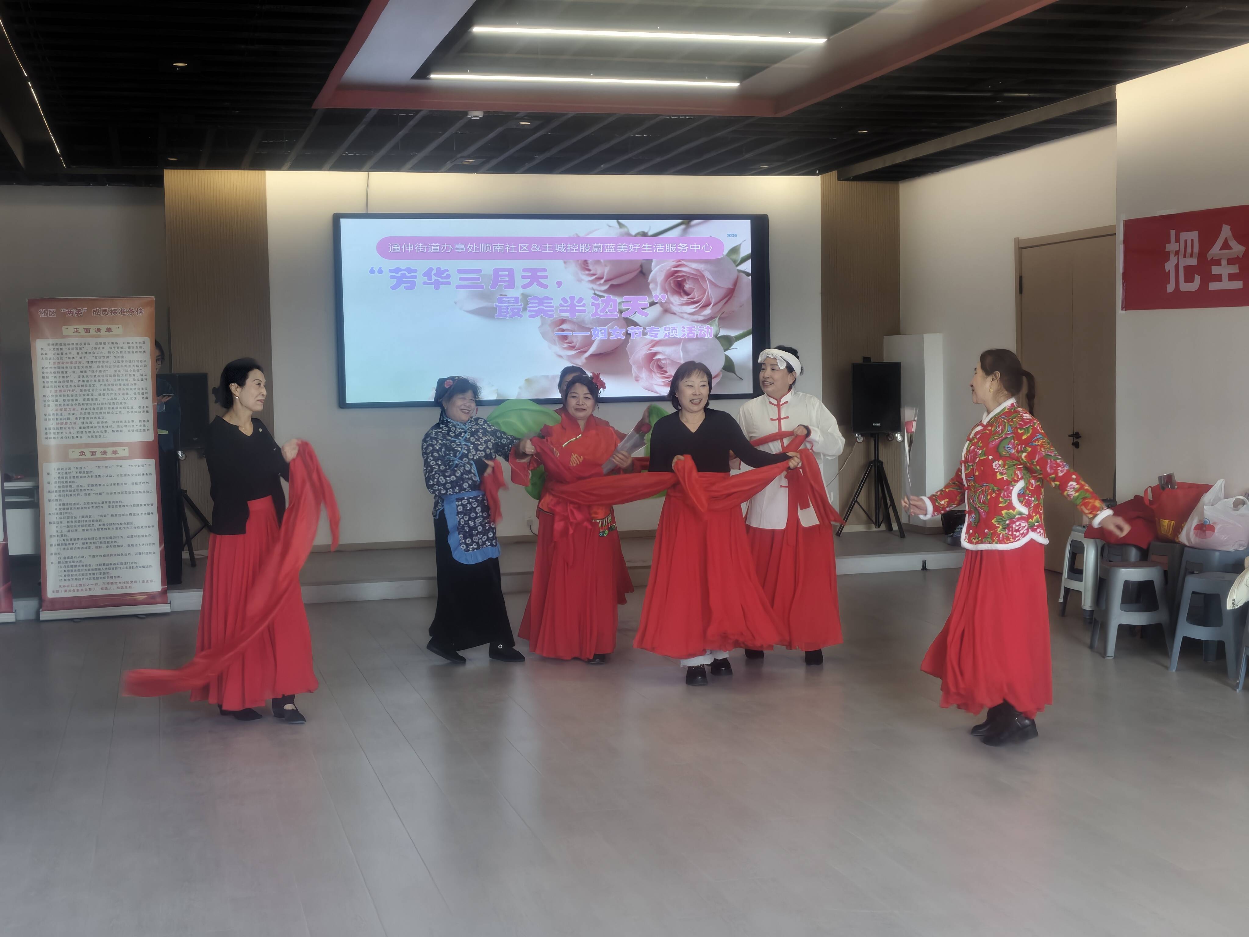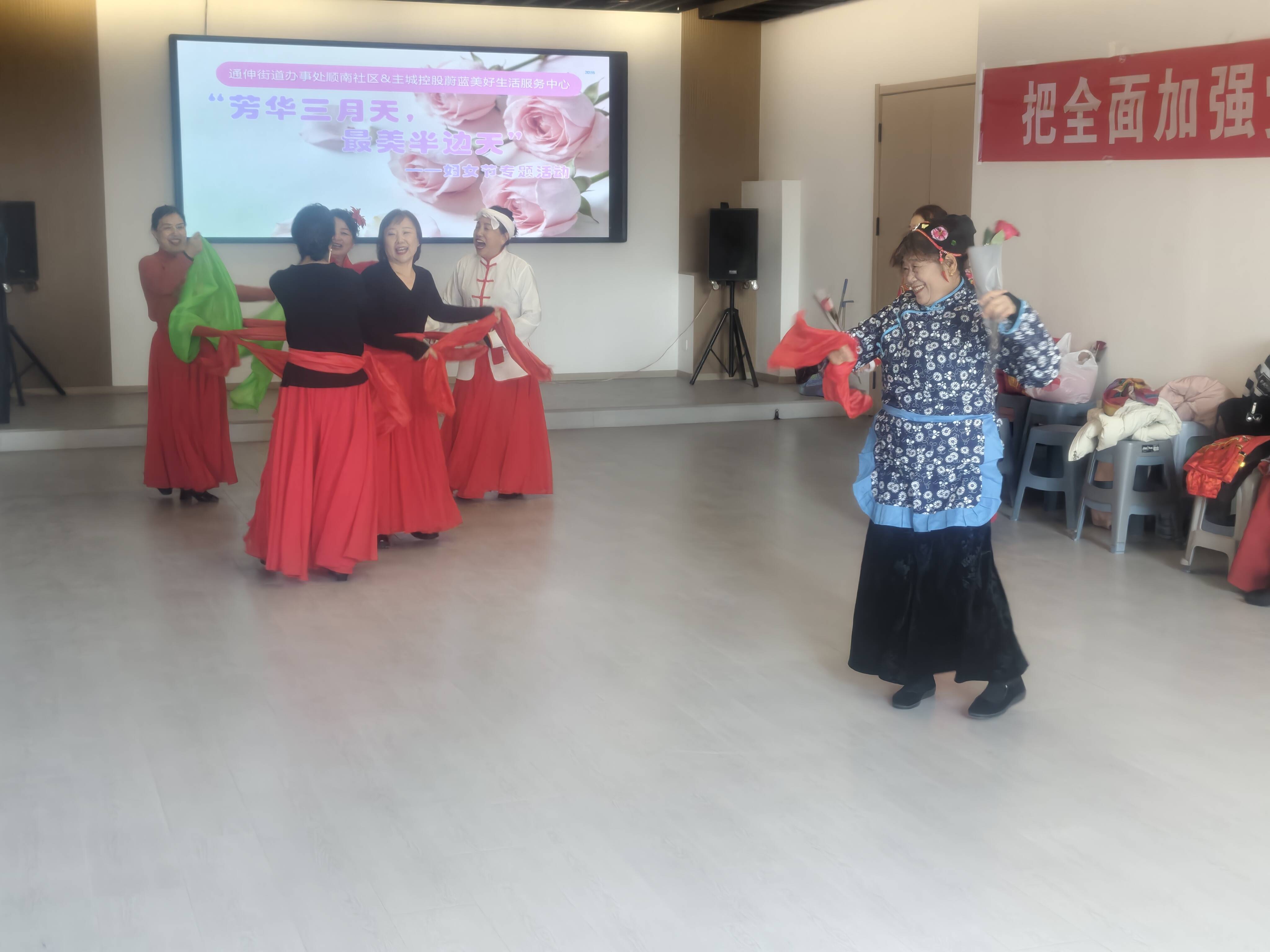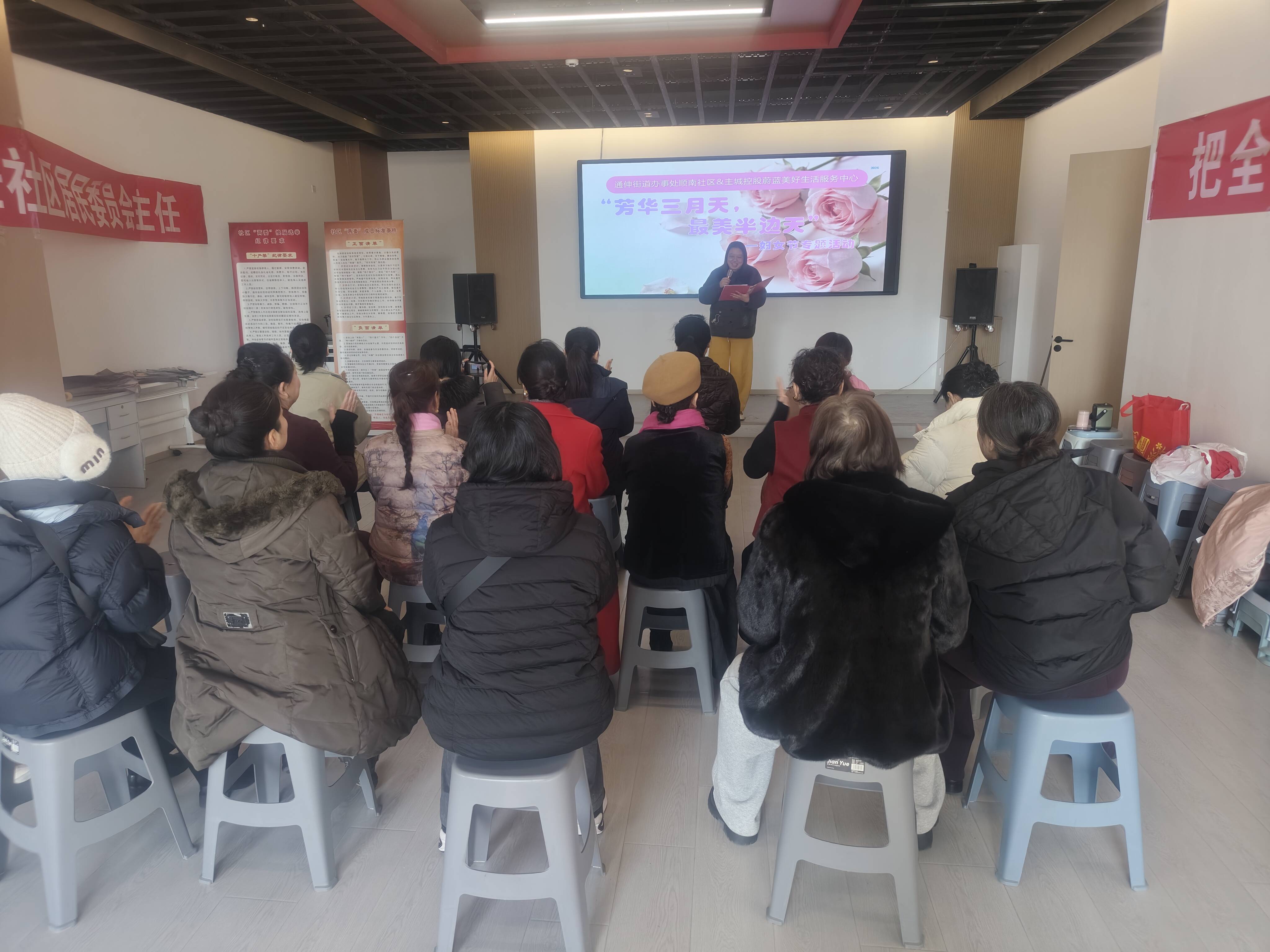 为庆祝第116个"三八"国际妇女节,丰富辖区妇女居民的精神文化生活,3月6日下午,顺南社区联合主城控股蔚蓝美好生活服务中心共同开展了"芳华三月天,最美半边天"妇女节专题活动。来自辖区的30余位妇女居民欢聚一堂,共同度过了一个温馨而难忘的节日。