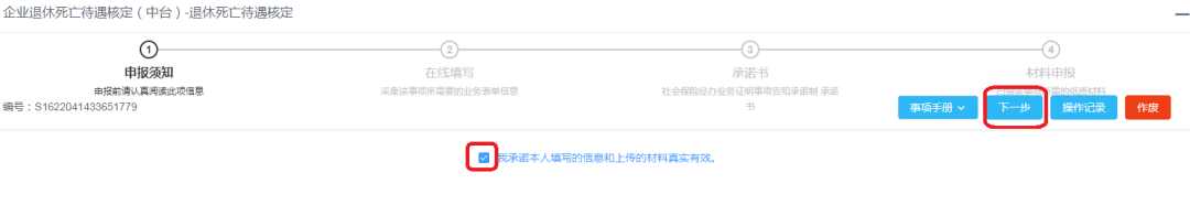 4、在申报须知中,勾选“我承诺”点击下一步